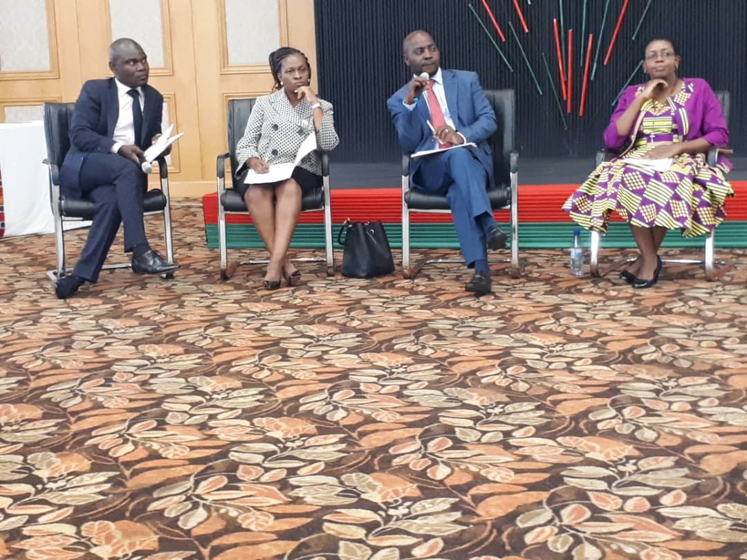 Spicing the launch was also a panel discussion involving the Director General of ARIPO – Mr. Fernando Dos Santos (middle), Mrs Gift Kadzamira – Director of Documentation and Information from NCST (middle), Mrs Dorah Salamba – Executive Director of COSOMA (far right) and Registrar General – Mr Chikumbutso Namelo (far left). Refer below: