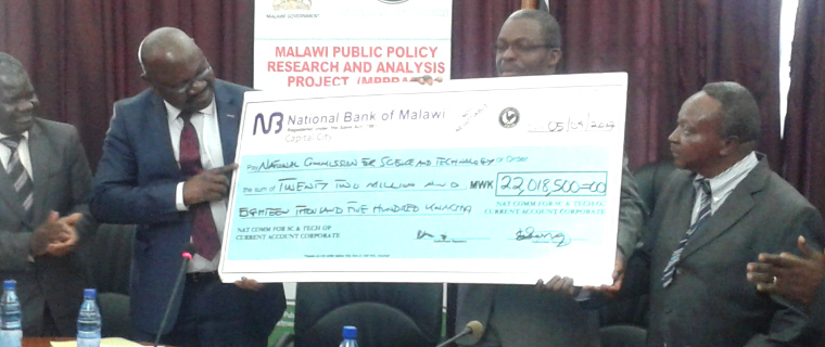 The Malawi Public Policy Research and Analysis Project (MPPRAP), a project within the Ministry of Finance, Economic Planning and Development, presented a cheque of